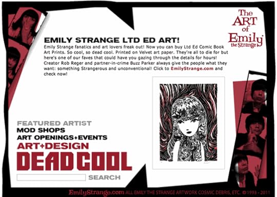 EMILY STRANGE LT ED ARTEmily Strange fanatics and art lovers freak out! Now you can buy Ltd Ed Comic Book Art Prints. So cool, so dead cool. Printed on Velvet art paper. They're all to die for but here's one of our faves that could have you gazing through the details for hours! Creator Rob Reger and illustrator Buzz Parker always give the people what they want: something Strangerous and unconventional! Click to