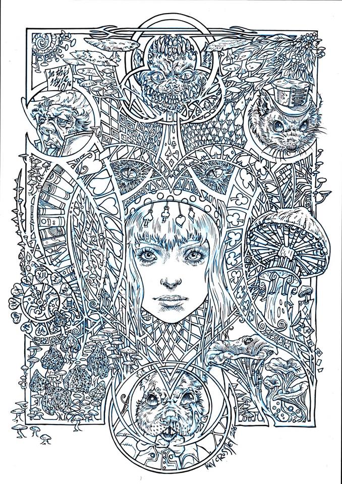 And in other Alice's Nightmare in Wonderland news, illustrator Kev Crossley is even now working on brand new illustrations for a follow-up to the Alice's Nightmare in Wonderland Colouring Book .