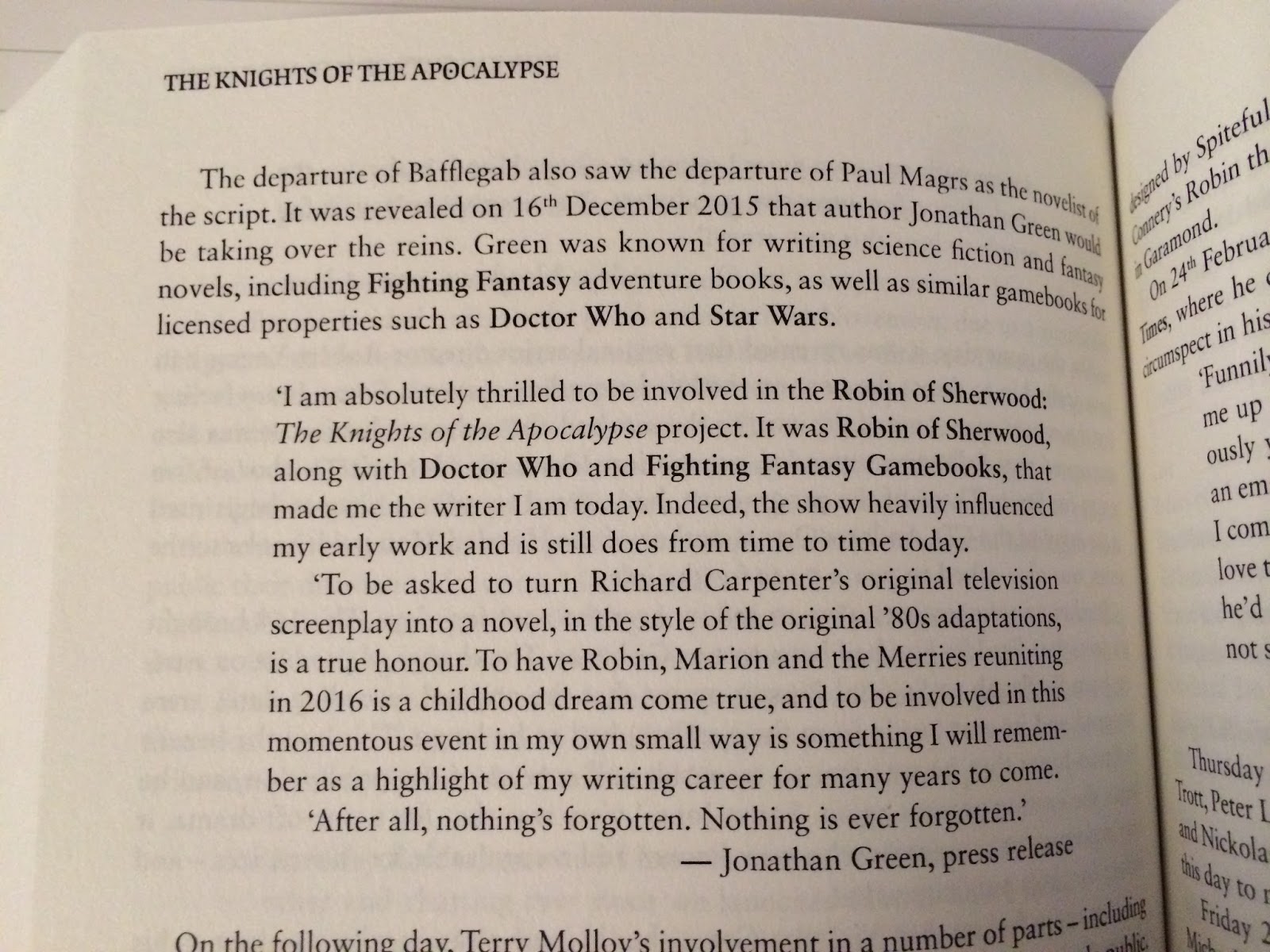 However, the highlight of the weekend had to be the first play of the trailer for the brand new audio darma Robin of Sherwood: The Knights of the Apocalypse . I say 'brand new', but it's adapted from a script written by Richard Carpenter, the show's creator, back in the 1980s. And I'm writing the novelisation of the same script, and was even doing so over the weekend, while I was attending The Hooded Man II.