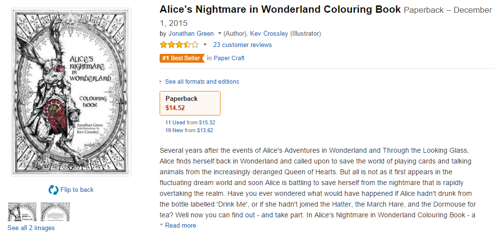 As you will already know if you read this blog post earlier in the year, this time last year I didn't even know I was going to write Alice's Nightmare in Wonderland, which, after YOU ARE THE HERO, is my best and most reviewed title that I was solely responsible for. And it spawned a colouring book too, which the Americans love!