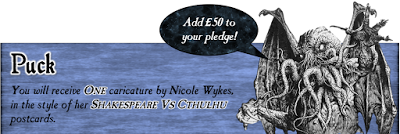 Over 400 people backed my first successful Kickstarter. Over 200 backed Alice's Nightmare in Wonderland . Seeing as this is going to be a book featuring mash-ups of Shakespeare's greatest plays and H P Lovecraft's most terrifying creations, I would hope we could attract more backers than those two other projects put together, but it relies on people helping to spread the word and let other potential backers know that the project is currently live on Kickstarter.