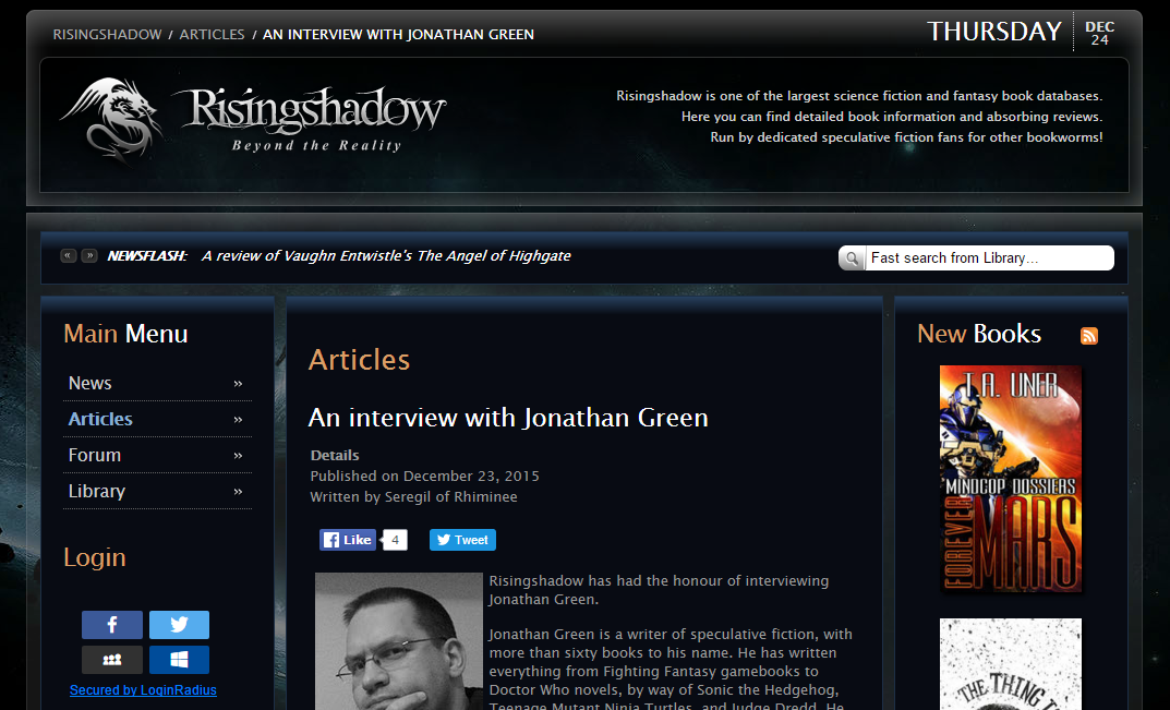 I appeared on RisingShadow.Net today, having taken part in an interview about