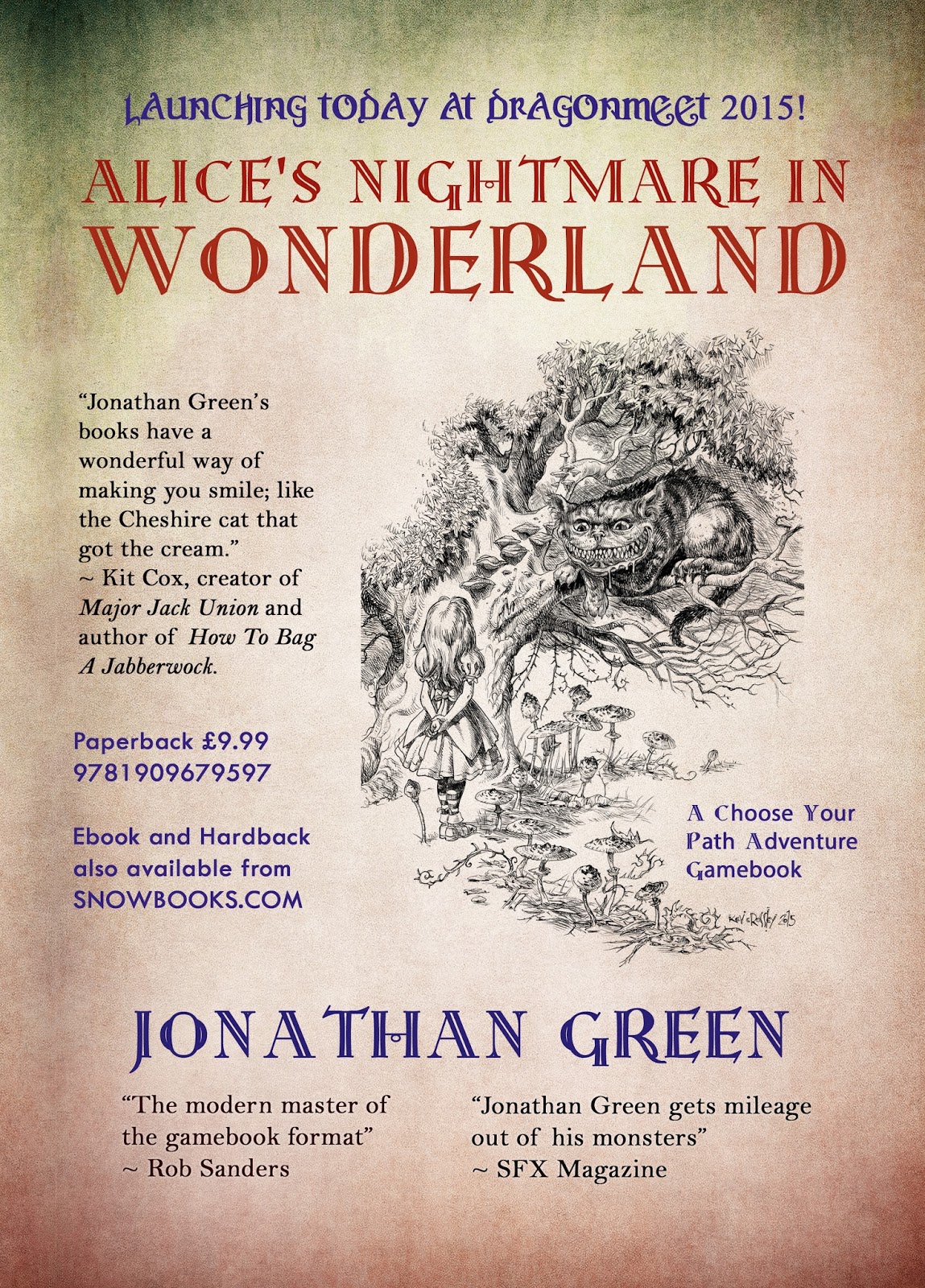 There's only one week to go until Dragonmeet , where I will be launching my brand new, choose your path adventure gamebook Alice's Nightmare in Wonderland. The launch itself will happen at 12.00pm - after the Jackson and Livingstone signing at the Fighting Fantasy stand that is next door to mine.