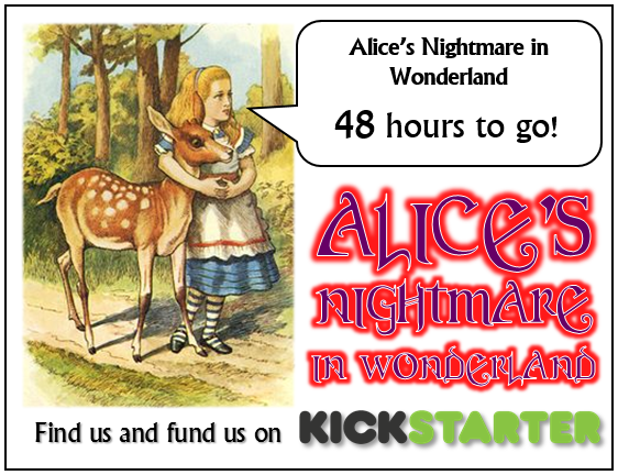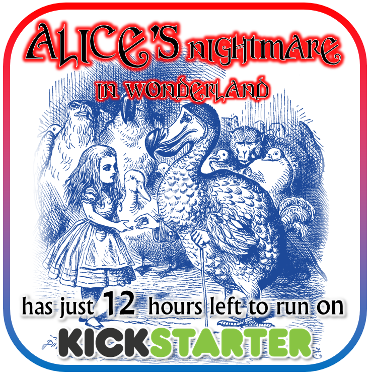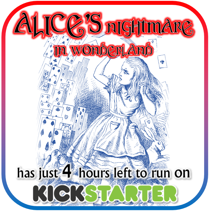 Take to social media, phone your friends, shout it from the rooftops! Alice's Nightmare in Wonderland Kickstarter has just 12 hours left to run on!