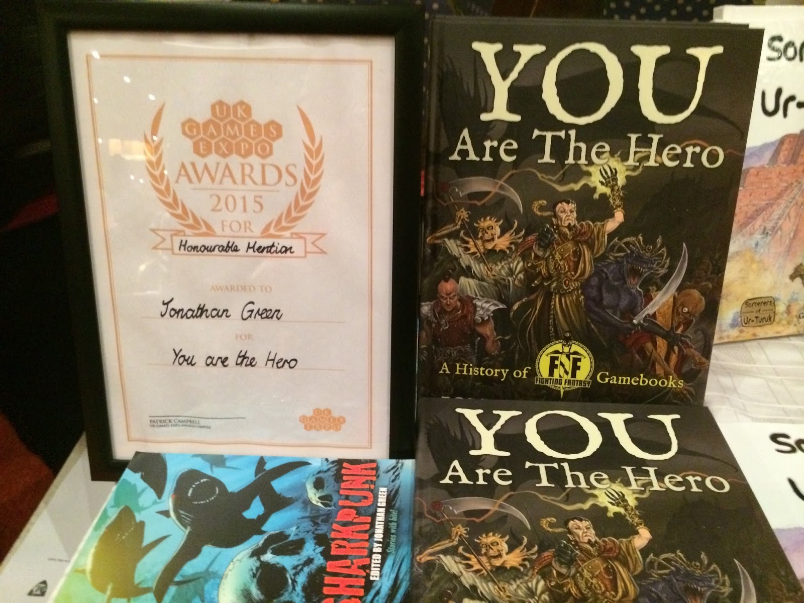 First off, I took YOU ARE THE HERO - A History of Fighting Fantasy Gamebooks , to the UK Games Expo last weekend... and it only received an Honourable Mention in the UK Games Expo Awards 2015!