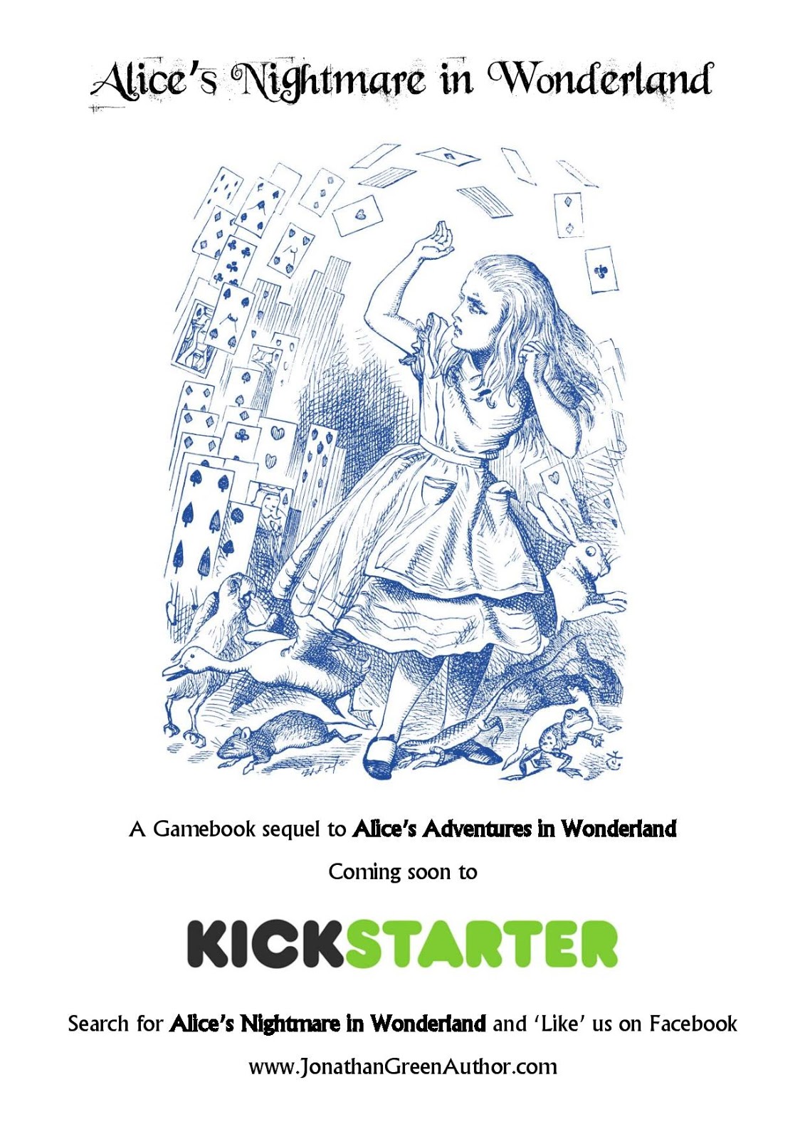 And before I go, I just wanted to draw your attention to this. If you're a fan of Alice's Adventures in Wonderland, Steampunk, horror, or gamebooks (or even all of the above), then please consider joining the Alice's Nightmare in Wonderland Facebook group, which will be the first step leading to the launch of a new Kickstarter, and getting a brand new gamebook published, in this the 150th year since the publication of Lewis Carroll's seminal children's portal fantasy.