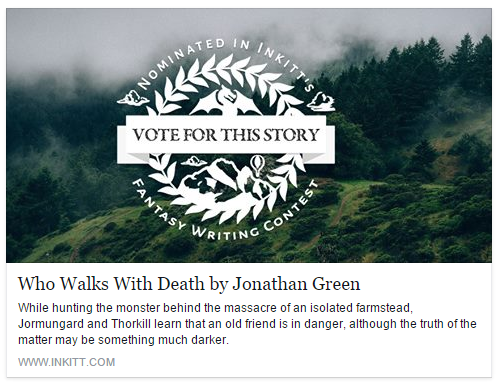 Who Walks With Death* has been entered into the Epic Worlds contest on Inkitt.com, so if you'd like to read one of my fantasy short stories for free, simply follow this link. And if you like it, you can vote for it in the competition.