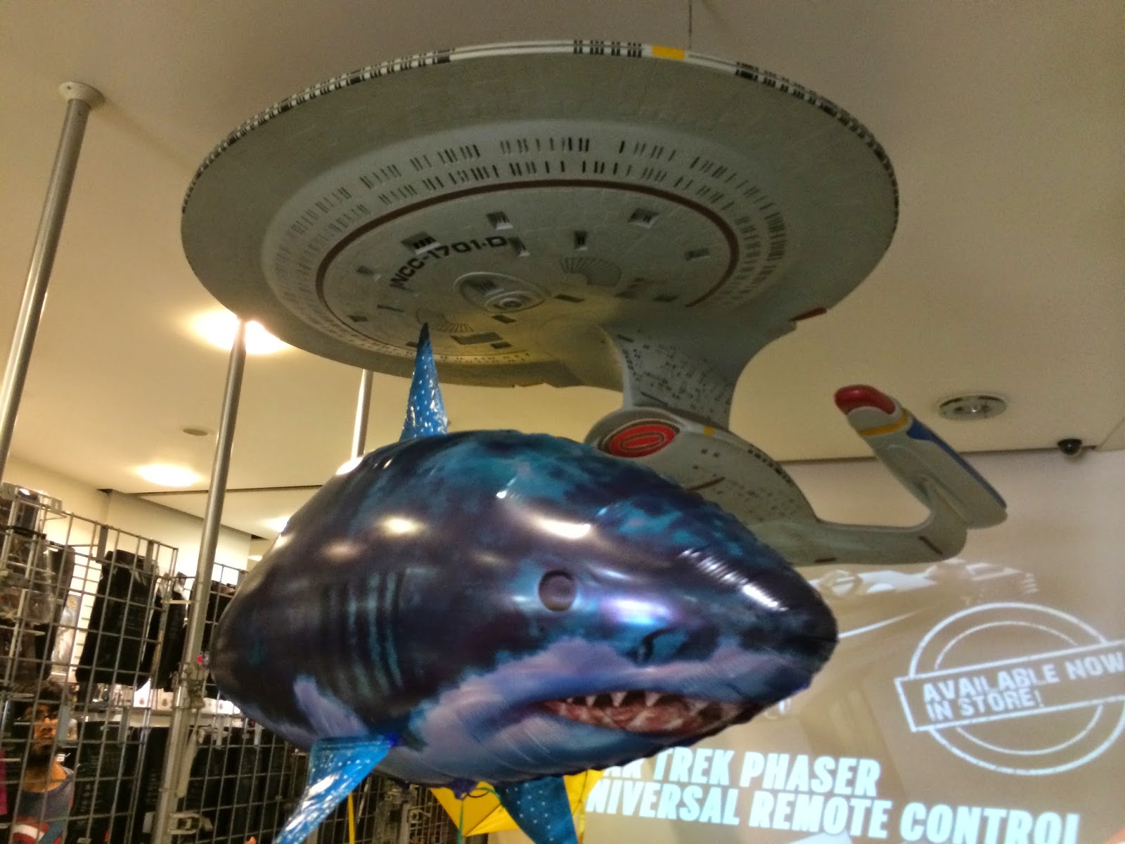 First of all, I want to say a big thank you to everyone who came along, keeping us all busy signing copies of SHARKPUNK , thank you to Snowbooks, particularly for the banner which everyone signed, and thank you to Forbidden Planet for hosting the event. There were shark-themed tablecloths, rubber sharks, shark teeth, shark cakes, shark biscuits, and even a huge flying shark which spent most of the time menacing the Starship Enterprise.