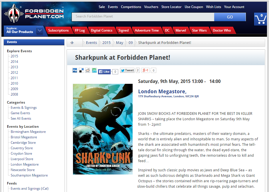 And don't forget, the official SHARKPUNK launch is taking place on Saturday, at Forbidden Planet in London, at 1.00pm. And there may be cake...