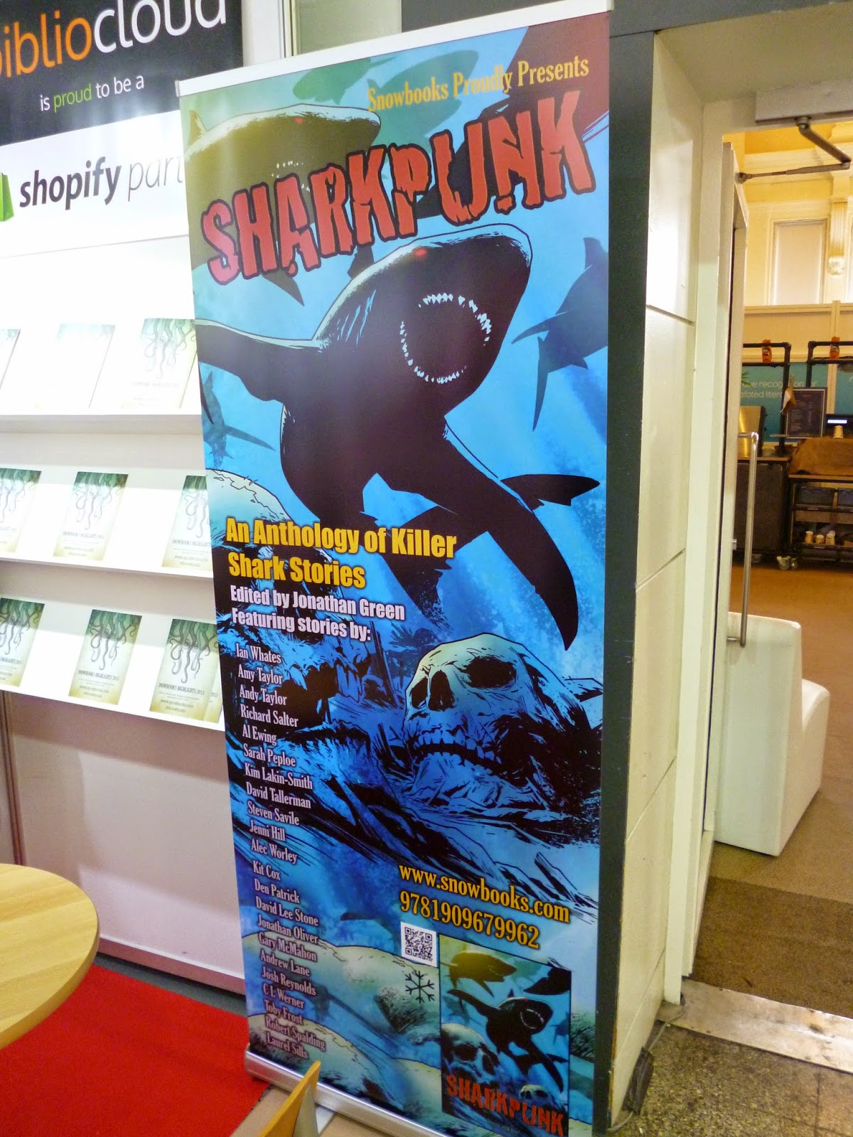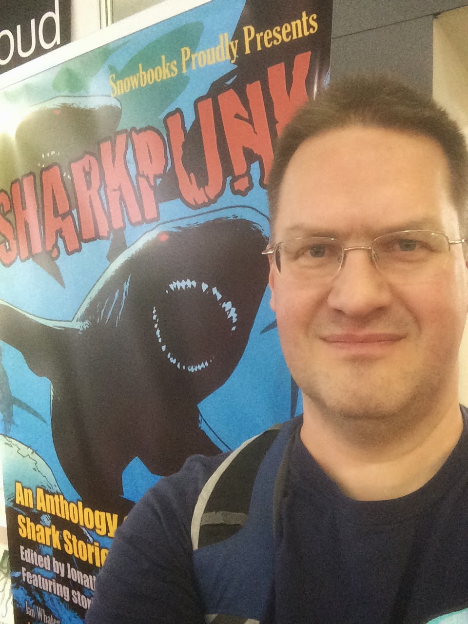 I also visited the London Book Fair yesterday where I caught up with publisher Emma Barnes and managed to take a sneaky selfie with the very cool SHARKPUNK banner.