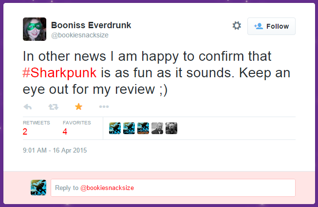 So keep an eye out for SHARKPUNK , coming your way in just 2 weeks! And don't forget, if you're in London on Saturday 9 May, why not come along to the official launch at Forbidden Planet, and have your copy signed by 13 of the contributing authors?