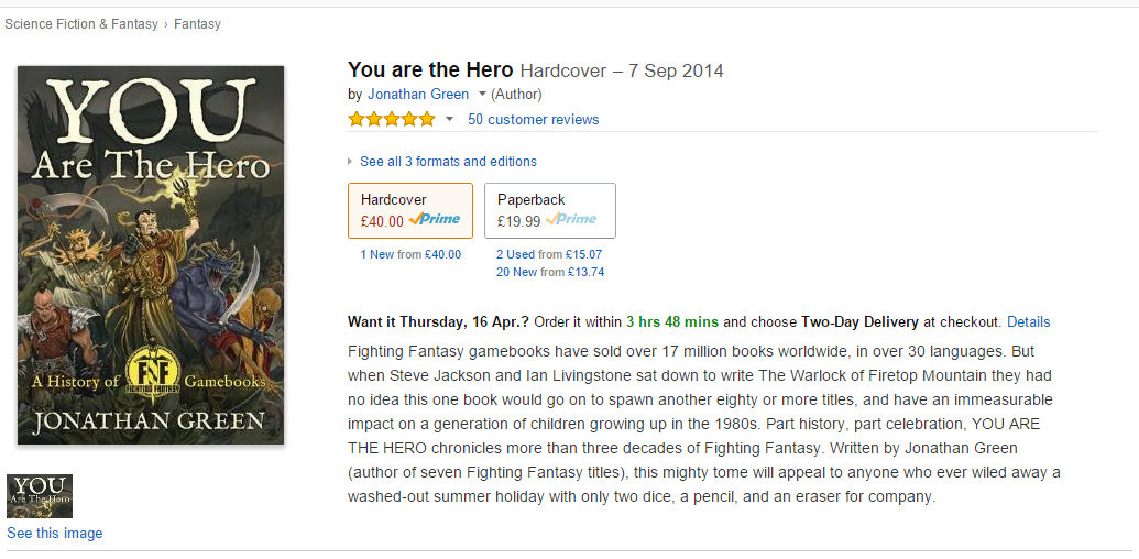 I thought it a worthy landmark to celebrate. My history of Fighting Fantasy gamebooks has received its Return to Firetop Mountain of reviews. That's right, the 50th review of my 50th published book has been posted on Amazon.co.uk, and it's another 5-star one.