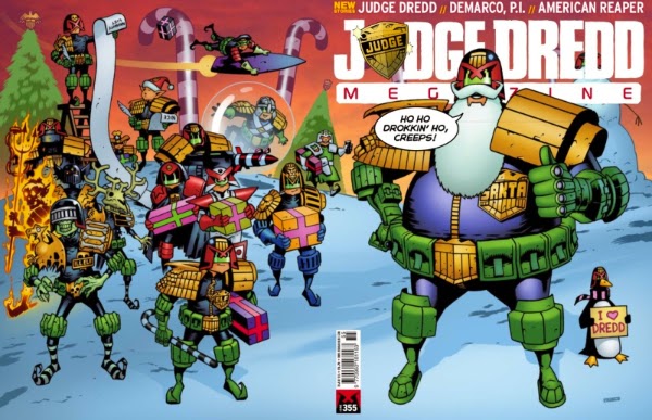 I was tempted to go with "'Twas the night before Christmas," but didn't think I'd get away with it. That said, how many other Christmas references can you spot in You'd Better Be Good, For Goodness' Sake...?To know what the hell I'm talking about, you'd better pick up your copy of the Judge Dredd Megazine #355 when it comes out later this week.