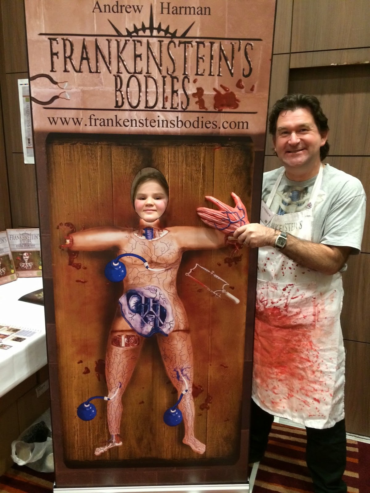 I always enjoy attending cons because it's a chance to catch up with friends in the gaming community (in the case of Dragonmeet) and it was good to see Tony Hough, Graham Bottley, James Wallis, Dom McDowall, Jamie Fry, Stuart Lloyd, Daniel Gooch, Sarah Newton, Mark Crew, Helena Nash (check out her new Choose Your Own Adventure style story here) and many others. It was also good to properly meet Chris Birch (who, along with his team, did a great job of organising his first Dragonmeet), Michele Howe**, Pete Wood, Sam Ockham and Andrew Harman, who was wowing everyone with Frankenstein's Bodies .***
