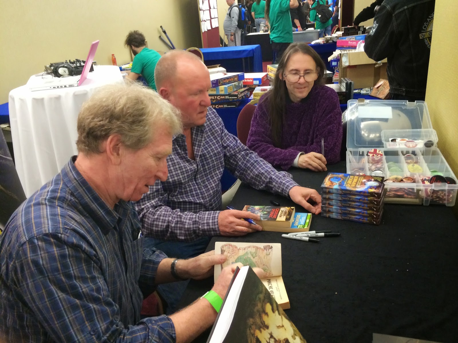 Steve, Ian and Tony signing for the FF fans.Thanks to all the organisers, everyone who stopped by my table, as well as Linda, Nimrod and Thea who kept the Greens company during the day (and an eye on all our stuff from time to time). Here's to Dragonmeet 2015!