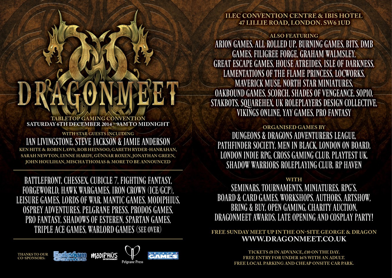 In just over a month I shall be attending Dragonmeet 2014 as a guest author. Gaming industry legends Steve Jackson and Ian Livingstone will also be in attendance.So if you're yet to pick up a copy of YOU ARE THE HERO , or if you just want to find out more about how the book came to be, buy a ticket today and I'll see you there.