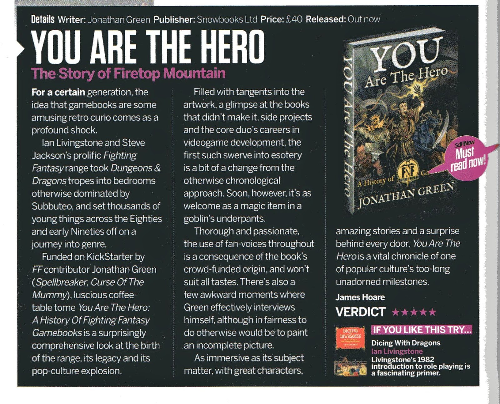 You can read the review in its entirety here, and you can pick up a copy of YOU ARE THE HERO - A History of Fighting Fantasy Gamebooks, here.