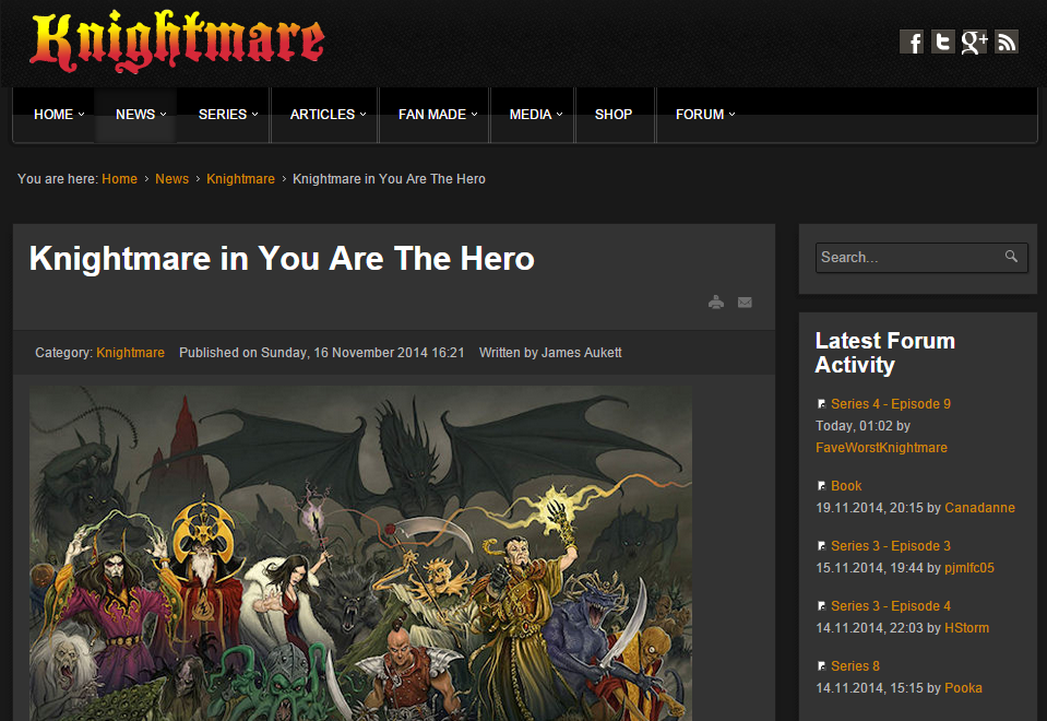 Gamebook Friday: YOU ARE THE HERO gets a mention on Knightmare.com