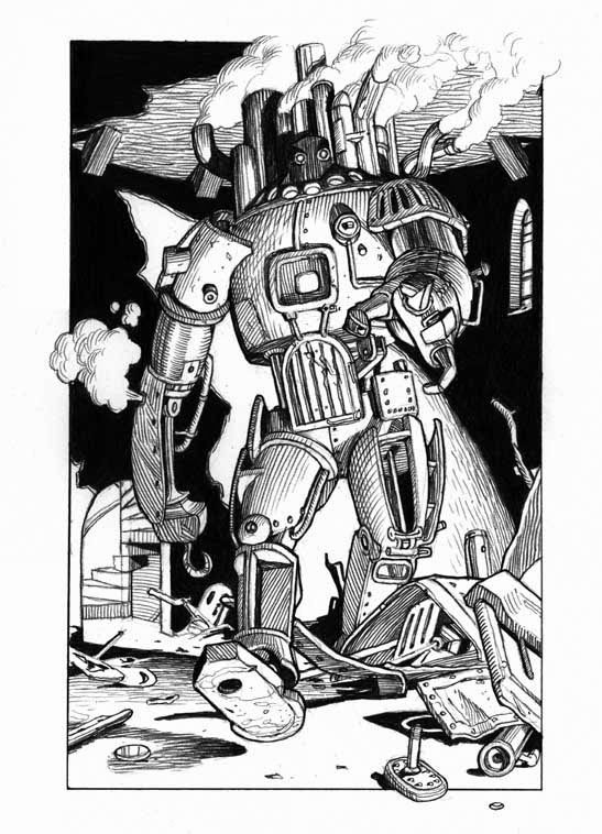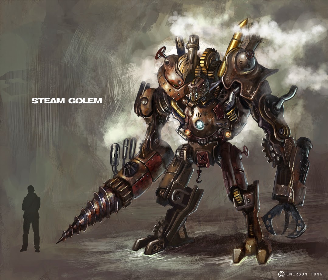 After reminding me that I need to write a piece for SFX magazine about Ted Hughes' The Iron Man, the miniature made me think of my own Steam Golem from Stormslayer ...