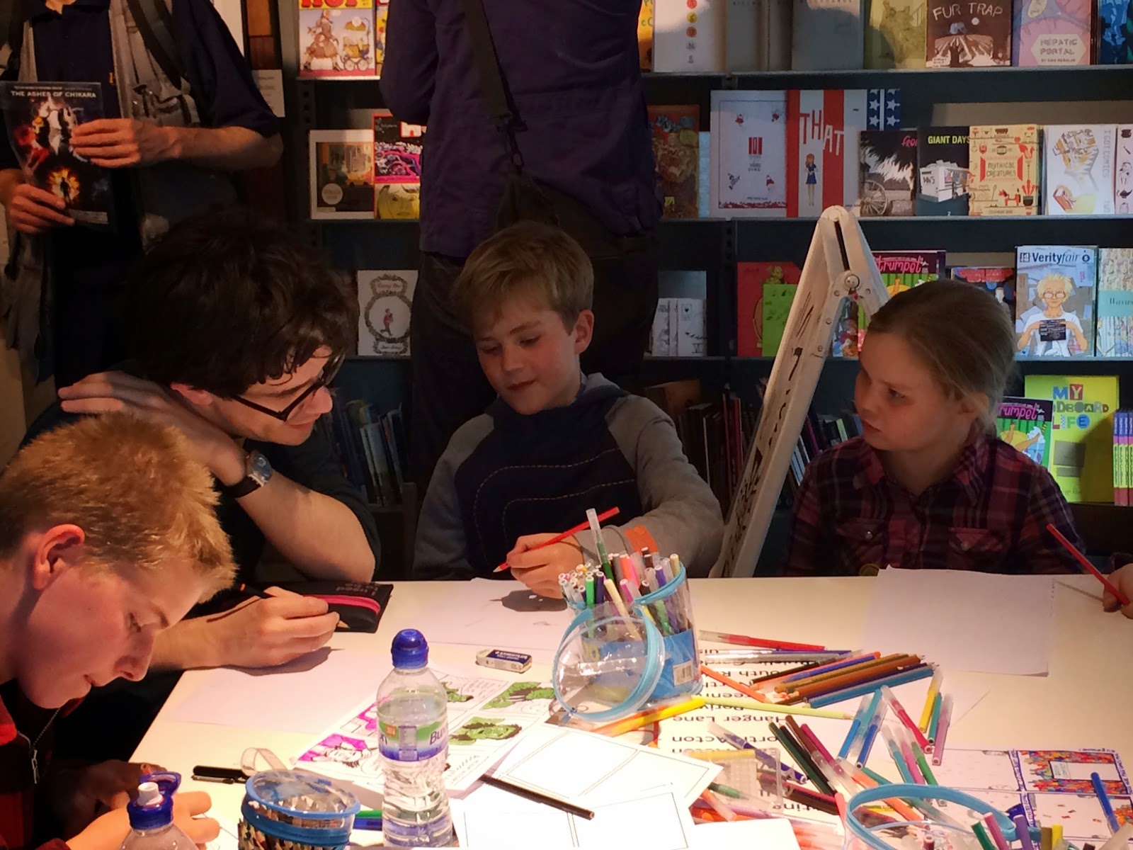 Tiernen Trevallion, illustrator of The Plague Pit.Next we headed into the heart of Soho to Gosh! Comics, where half of Family Green made the most of the art activities on offer for the discerning younger comic book fan.