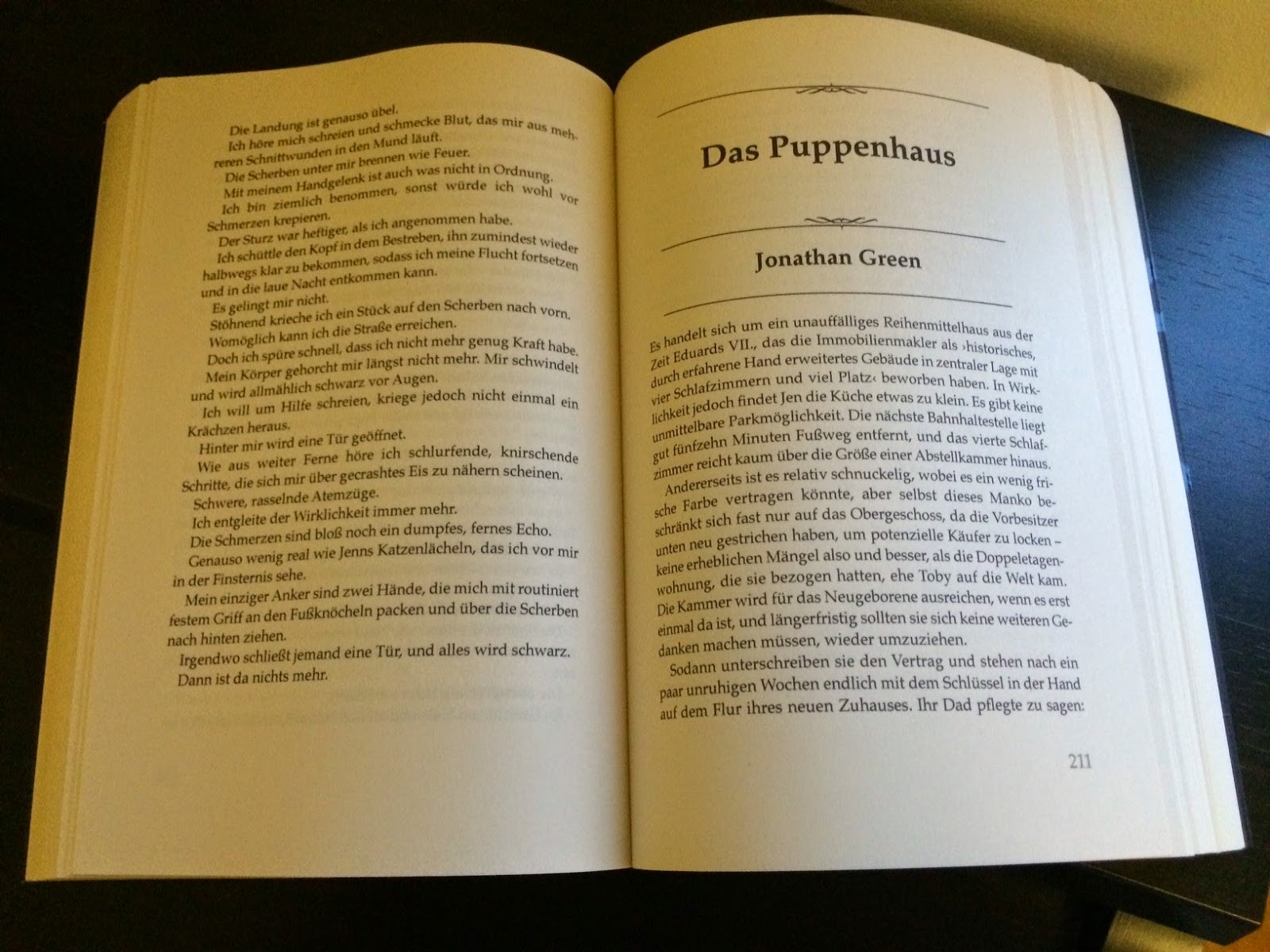 The best thing about it is that the title of my own contribution, The Doll's House , translates as Das Puppenhaus.