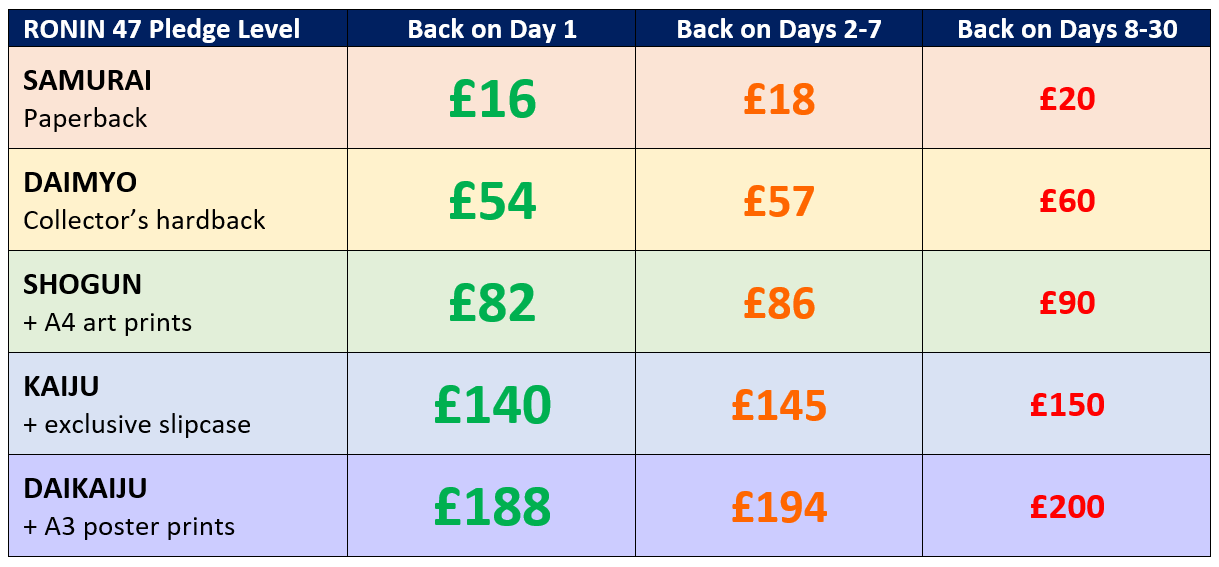 I hope you will check it out and pledge your support to RONIN 47 when it goes live, and it pays to back early. Back within the first week and you'll get a discount on your pledge price. Back within the first day and the discount doubles!