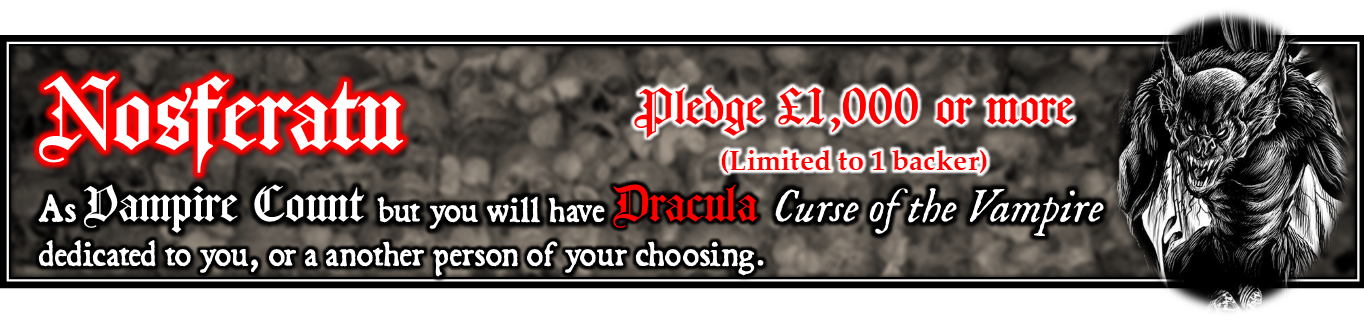And then there's the NOSFERATU level reward. This is only open to one person but, in addition to all their other rewards, that person will have Dracula - Curse of the Vampire dedicated to them, or another person of their choosing.