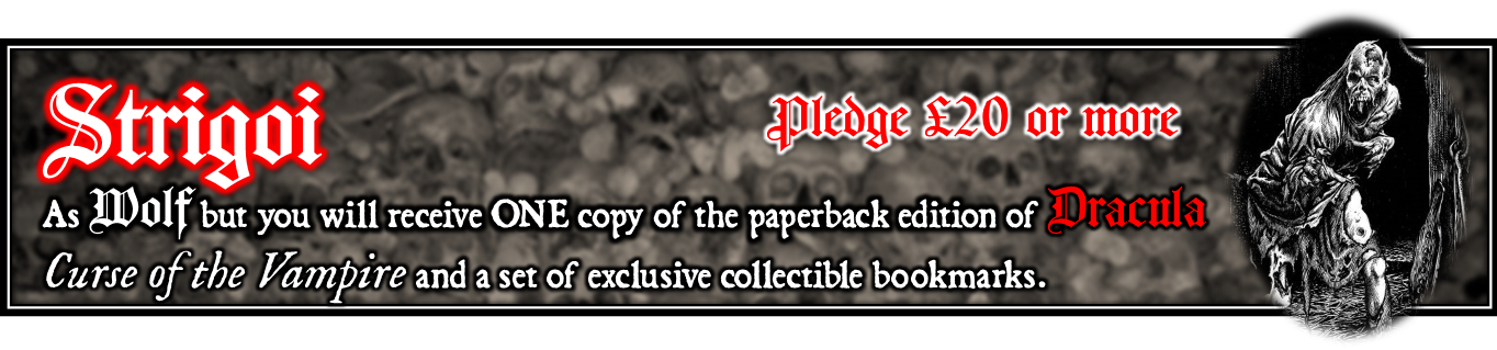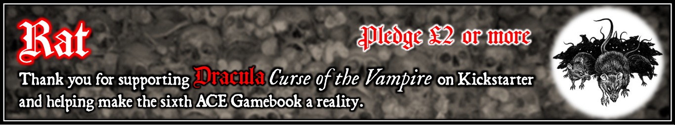 The reward levels on offer for Dracula - Curse of the Vampire will be familiar to regular backers of my Kickstarter gamebook projects. The lower pledge levels are as follows...