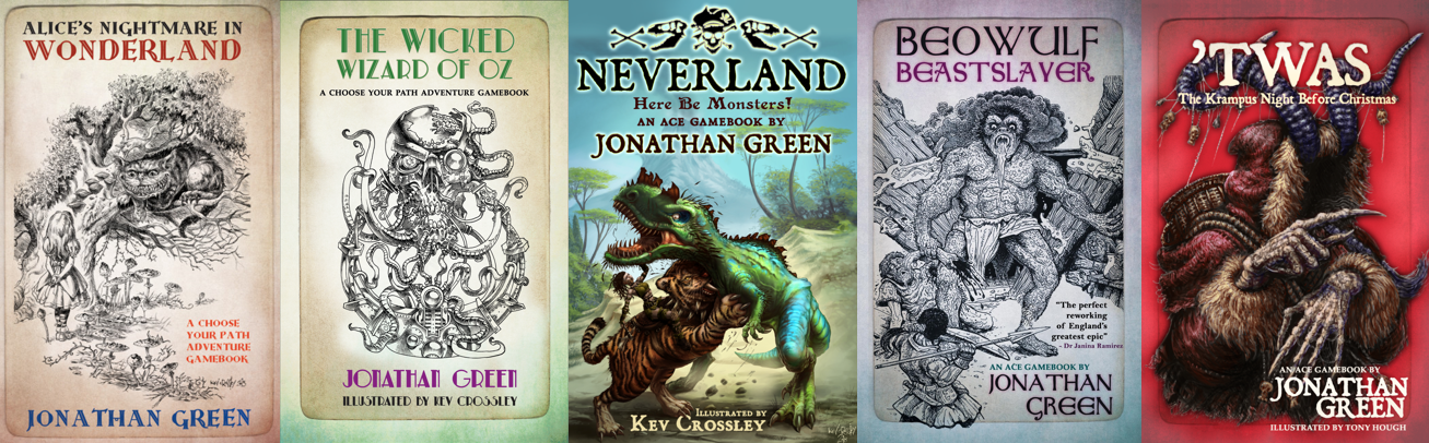 I've worked with talented artists such as Martin McKenna, Pye Parr, Simon Coleby, Kev Crossley, Russ Nicholson, and Tony Hough, and I've started my, I am pleased to say, ongoing relationship with publisher Snowbooks. Talking of whom, within the last five years that I have created my ACE Gamebooks series, which is published in the UK by Snowbooks, and which has, to date, been taken up in one form or another by six foreign language publishers and counting.