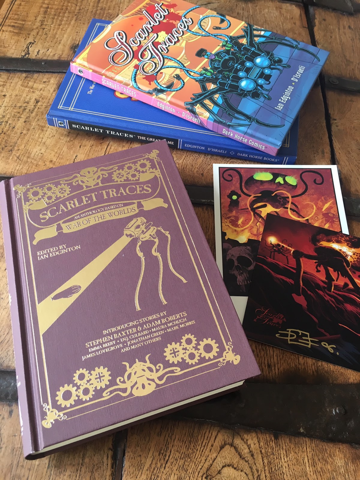 When I returned from MantiCon, last weekend, I was delighted to find the hardback of the Scarlet Traces anthology waiting for me. Edited by Ian Edginton, contributing authors were simply given the brief of writing a story set somewhere within the timeline of the