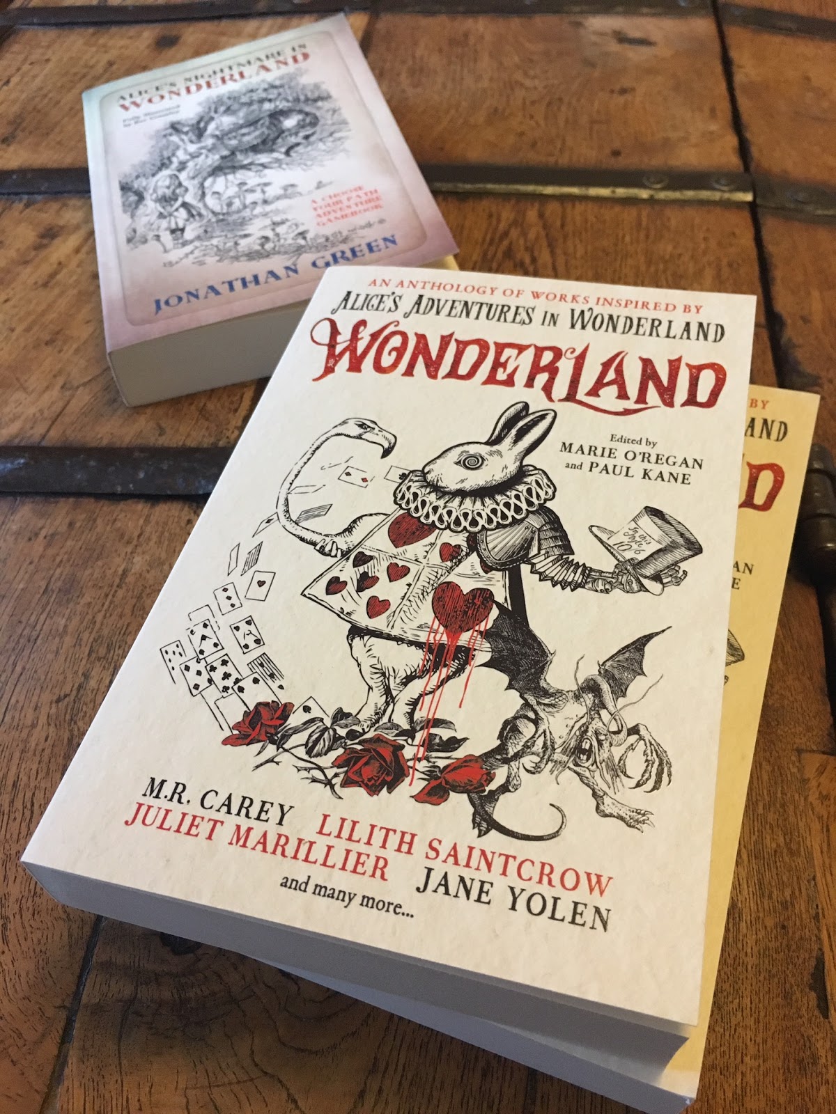 Wonderland, the anthology, with another Alice-inspired book in the background.