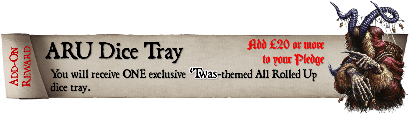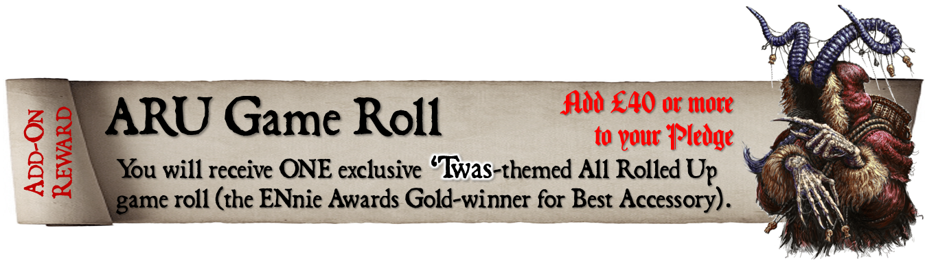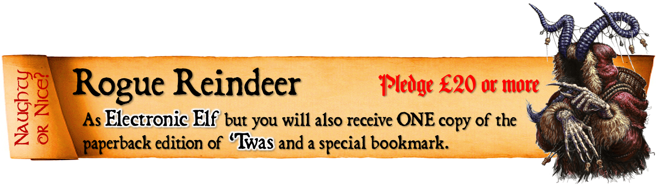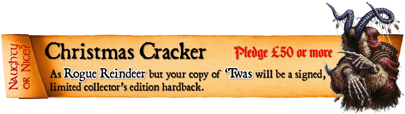 Look through the list of reward levels below and select the one you would like.Look through the list of add-ons and decide if you would like to add any of these to your pledge.Add the cost of any add-ons to the cost of the reward level you have selected, finally adding the correct postage for your country, to calculate the total amount you will need to pay.Email info@jonathangreenauthor.com, making the title of your email 'TWAS Late Pledge and listing the reward and add-ons you have selected. I will then get back to you with details of how to make your payment via PayPal. Postage will need to be paid later, via an external pledge manager.Please note - you can find out more about precisely what comes with each reward level by visiting the 'TWAS - The Krampus Night Before Christmas project page here .