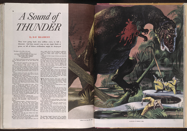 Like many 5 and 6 year-olds, I was obsessed by dinosaurs. I would spend hours tracing the dinosaurs in the colouring book I had, and I loved films like The Land That Time Forgot , Valley of the Gwangi , and One Million Years BC , shown on TV during the afternoon at weekends. When I was a little older, by father and I would make Airfix kits of dinosaurs together, and I have very fond memories of travelling up to London on the train with him, specifically to visit The Natural History Museum and its dinosaur collection. I even remember an English lesson, early on in Secondary School, in which we studied an extract from Ray Bradbury's A Sound of Thunder , focusing on the arrival of a T-Rex.