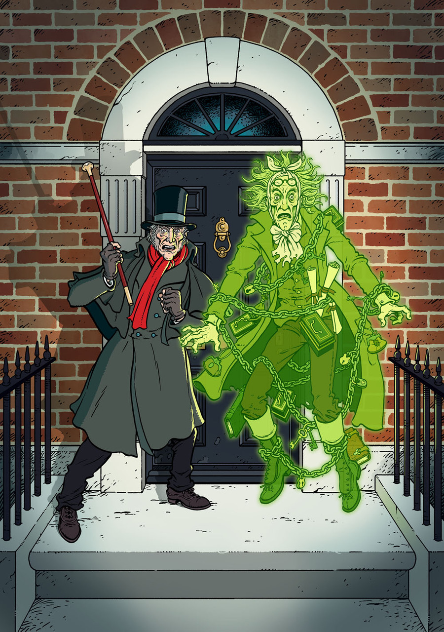 The fully coloured image for Scrooge and Marley (Deceased)copyright (c) 2017 Garen Ewing