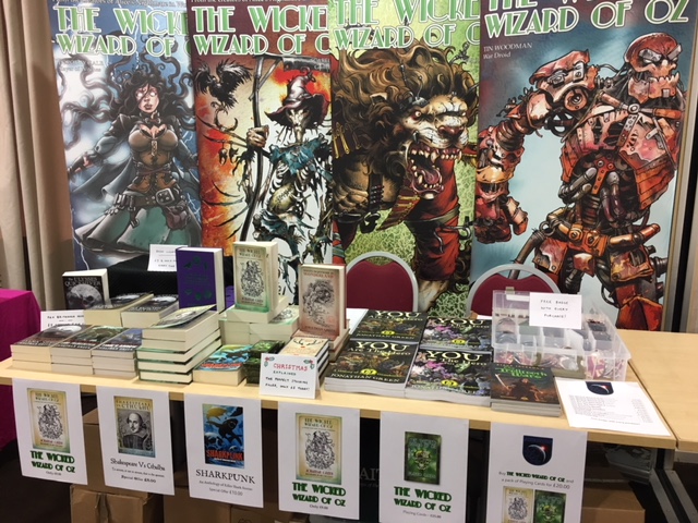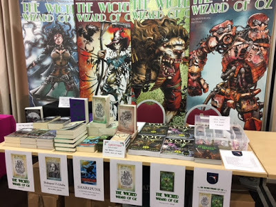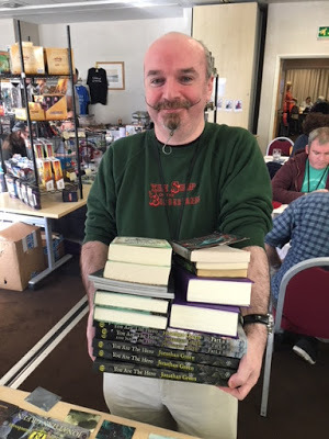 Mark Poles stocking up on signed stock for The Shop on the Borderlands.Over the course of the weekend I gave a talk about writing adventure gamebooks, and another one about my Pax Britannia steampunk novels. I also took part in an author's panel on the Sunday afternoon. But the highlight of the weekend, for me, had to be Circle of Spears ' live reading of my Fighting Fantasy gamebook Night of the Necromancer . I will never look at that particular book in quite the same way again.