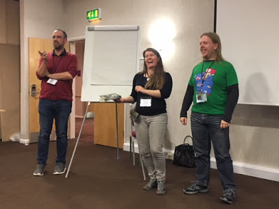 Raring to go at ArmadaCon 2017.ArmadaCon is only a small convention, but it is incredibly friendly, and in no time at all I was made to feel very welcome. It was also great to catch up with old friends - like Andrew Lane, Helen Stirling, Frances Hardinge, and David Wake - and to make new ones - like Mark Poles of The Shop on the Borderlands , and RB Watkinson.
