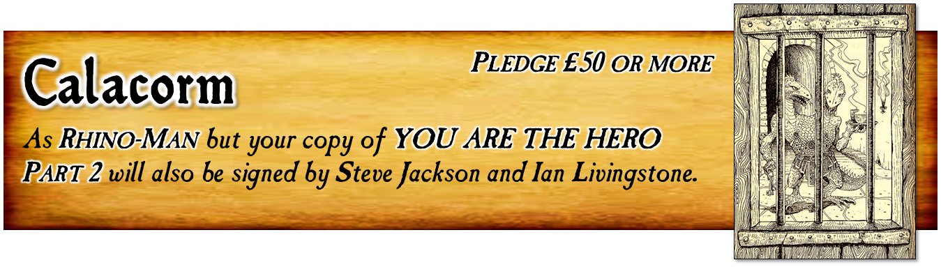 If you put in a Late Pledge you will gain all the benefits of someone who backed the original Kickstarter. For example, any physical copies of YOU ARE THE HERO Part 2 will be hardbacks. You will also receive the prints that come with the £20 Gargoyle reward level and above, and if you back at the £50 Calacorm reward level or above you will also receive a pair of custom-made dice.
