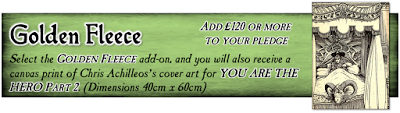 A new art add-on has also been announced. Add £120 to any other pledge (or select the Golden Fleece reward by itself) and you could be the proud owner of a canvas art print of Chris Achilleos's cover art for YOU ARE THE HERO Part 2 .