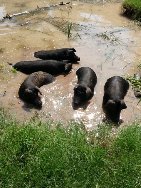 On a more positive, less expensive note, the pigs have happily become aquatic animals. They adore the pond. They’re like three-year-olds in a wading pool.