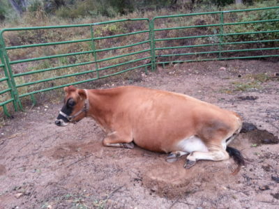 Before anyone worries, I’m pretty sure statistics show that even I am more likely to die while driving on the freeway than via joyful cow. Still, I’ll admit that the sooner that cow has her own calf to play with, the better. And she damn well better be as good a milker as I was promised. Or else!