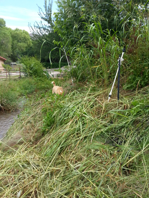 Half done cutting Quack GrassShe wanted to wait until they dried on their heads. I warned that the birds would get them all, so we settled on harvesting yesterday. Then she asked the most appropriate question. “So how do I get to them?”