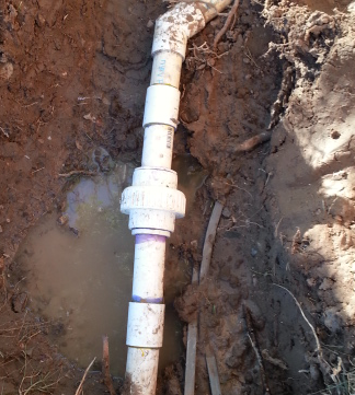 Maybe?It lasted until this morning. The bulge ended up pushing one of the pipe ends out of alignment. This time Al came back with the perfect coupling (I hope). We dug again for a little bit, he cut, he fitted, I pushed pipes this way and that, until, once again…Voila! The fix is holding.
