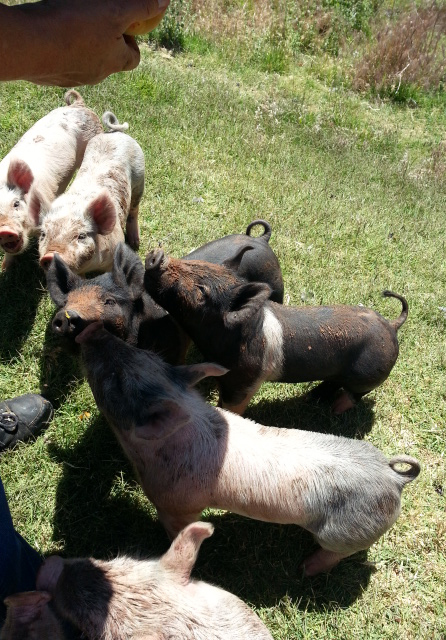 The next thing I knew Stephanie was hand-feeding those piglets gooey chunks of ripe apricot. Now, every time I enter the orchard I have eight little guys snuffling at my shoes and pants, hoping I might be that one who provides the treats.