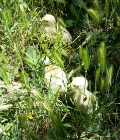 Two days later, she perked up and, all of a sudden, she was squatting for the toms again. Okay, you’ll laugh when I say this, but I think she was mourning her first lost brood. Once she was past the grief, she figured she’d try it again. Where did she go? Back outside the fence into the wilds of the blackberries.