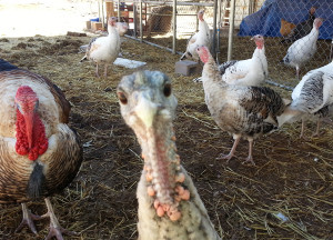 Gabby Gray photobombing me last year.As for my hens adapting, last week I lost the hen I most need to help make this transition, Gabby Gray was one of my two oldest hens and the boldest of all the girls. I have twice watched Gray attack a Black Hawk as it was dropping out of a tree to steal a poult. She flew right up at it, back beating her wings, and slammed into the hawk, breast to breast. Given that she was about 50% bigger than the hawk, both times the raptor decided to retreat.