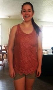 One of her new outfitsAfter much schedule juggling my granddaughter Judah finally made it to the farm for a twenty-four hour visit. She’s sixteen, is joining the National Honor Society, and has two part-time jobs. The first job, working in the kitchen at UCYC in Prescott, actually provides her a little income. Her second part-time job as an actress feeds her soul.