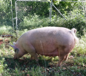 But I’m getting ahead of myself. On Tuesday morning, Miss Piggy was waiting for me at her pen gate–very unusual for a critter who doesn’t like to get up before 10 AM. The instant she saw me, she slammed the gate with her head. The message was clear: “Let me out!”