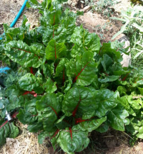 As you’ll note from the picture, the chard seeds I tossed all over that pile of wood and dirt have done very well. Considering the age of those seeds and that I didn’t store them properly (seed heads jammed into a bucket standing in the hallway), and that both the sheep and piglets have grazed these plants, they’re magnificent! And tasty. Chard, spinach, there’s no difference except you can use the crisp chard rib in place of celery in egg salad. Desperation is often the mother of invention.