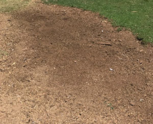 So, the birds started working on this stuff, scratching and pecking. After two months of effort they hadn’t made much of a dent in it. There were still pie-sized chunks of crust that would stink all over again when I irrigated.