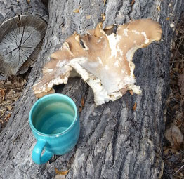 wing up one of the stump’s woody ribs. I’m positive it’s not a shiitake. It actually looks, um, a little ina